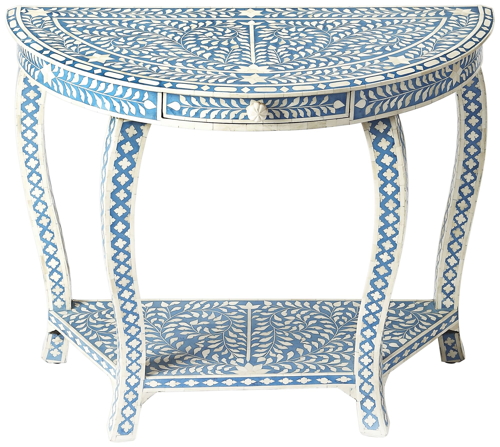 Get Blue Inlay Console Table Images. Bone inlay, mother of pearl inlay and glass inlay console table beautiful furniture and decor items which makes a stands out presence in your house or office. The blue coloring adds to any decor style, and the wood construction provides a durable, sturdy piece that is sure to last throughout the years.
